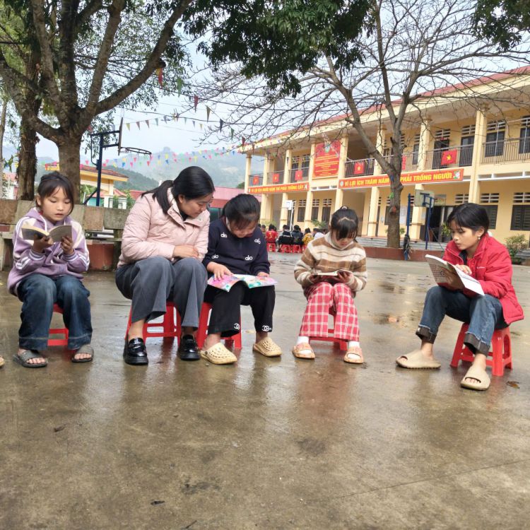 Hoạt động "Đọc chào Xuân" được diễn ra với nhiều hình thức phong phú như: đọc sách tự do tại sân trường, thi kể chuyện theo sách, và chia sẻ cảm nghĩ về cuốn sách em yêu thích nhất. Dưới sự hướng dẫn tận tình của các thầy cô giáo chủ nhiệm, các em học sinh đã nhanh chóng chọn cho mình những cuốn sách ưng ý và say sưa lật giở từng trang giấy.